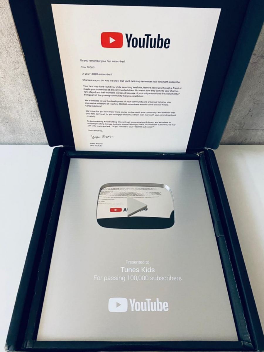 كنوز نت - دبي : 2021 حصدت قناة تيونز كيدز للأطفال وهي أول قناة غنائية ترفيهية تعليمية تهتم بالطفل الخليجي بشكل خاص والطفل العربي بشكل عام الدرع الفضي من شركة يوتيوب لتجاوزها 100 ألف مشترك في وقت قياسي من إطلاقها عبر منصة يوتيوب ، ويعزز ذلك النجاح والإنتشار الواسع الذي حققته القناة بأعمالها الفنية للطفل التي تطرح بشكل دوري مما أوصلها ليومنا هذا بعدد مشتركين 175 ألف مشترك ومشاهدات وصلت إلى 52 مليون مشاهدة والأرقام تتزايد بشكل يومي نظرا لنجاح وقبول الأعمال التي انتجت وقدمت للأطفال .
