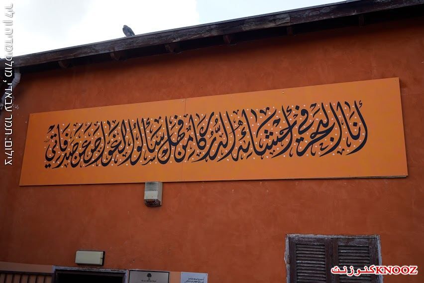 وقد أرفقت للجدارية ترجمة للعبرية والإنجليزية على لوحة صغيرة للقرّاء الأجانب.
