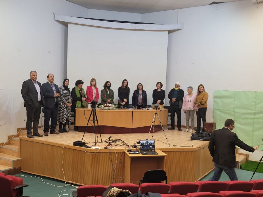 وتلى الكلمات الترحيبية ندوة حوارية أدارتها الإعلامية شيرين يونس وشارك بها كل من الناشطة النسوية مديرة مركز الطفولة نبيلة اسبنولي التي عددت المحطات النضالية في حياة المرأة الفلسطينية، ود. ورود جيوسي المحاضرة في كلية بيت بيرل التي تطرقت إلى الصعوبات التي تواجه الأكاديميات العربيات التي تزداد نسبتهن، والفنانة أمل مرقص التي تطرقت إلى وضع الفن في فترة الكورونا عامةً ووضع الفنانة المرأة بشكل خاص وغياب النقد الفني من الحيز العام، والمختصة والمستشارة الاقتصادية نردين ارملي التي تطرقت إلى وضع النساء العربيات في سوق العمل كما والعنف الممارس ضد النساء اقتصاديًا ومجالات العمل المتاحة أمامها، والبروفسور نهاية داوود المختصة في الصحة الجماهيرية التي تطرقت إلى صحة المرأة بشكل عام وصحة المجتمع بشكل خاص ضمن منظومة صحيّة هشة كشف عن ضعفها أكثر مع تفشي وباء الكورونا.