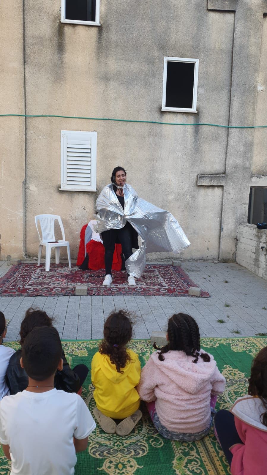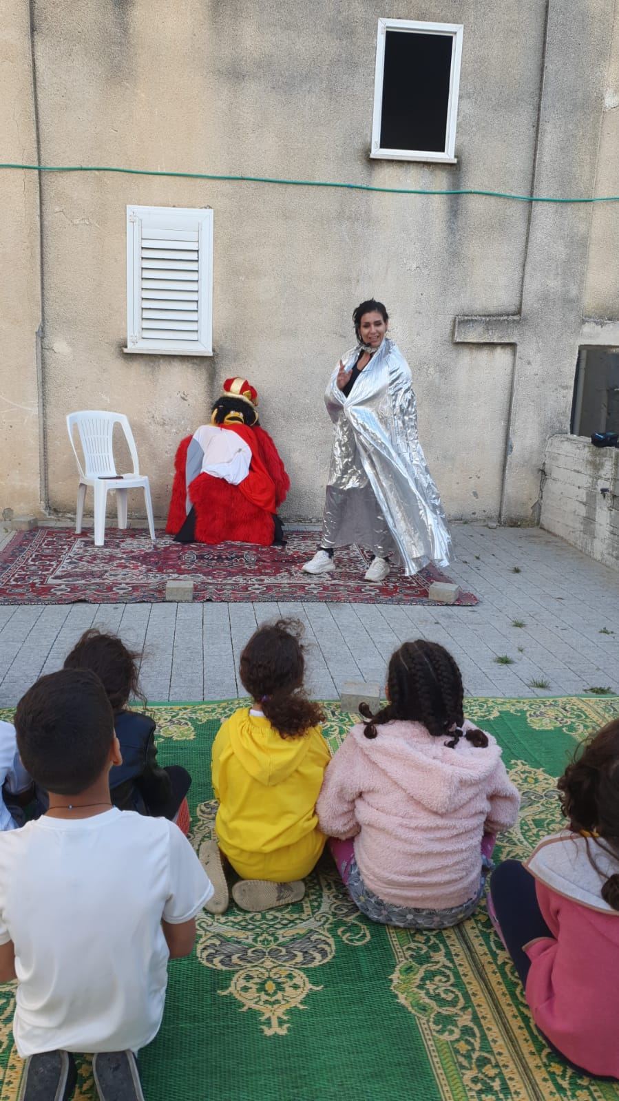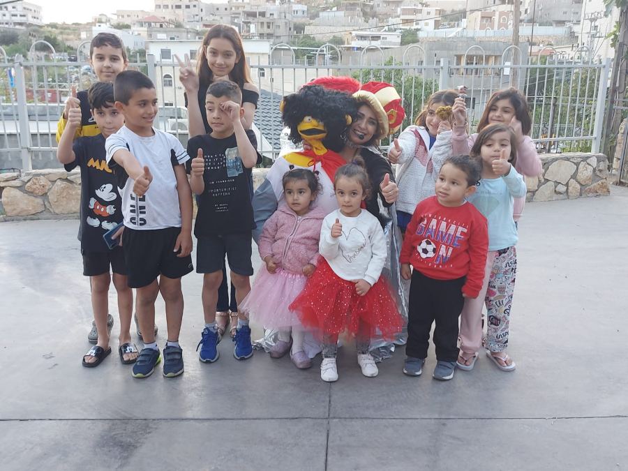 حيث التقت الفنانة لينا مع أطفال الحي وامهاتهم وبرعت في رسم بسمة حقيقية ملونة بأطياف الفرح والرضا على وجهوهم ، ولا سيما انها استطاعت ان تجعلهم يندمجون لأبعد الحدود مع القصة والدمى