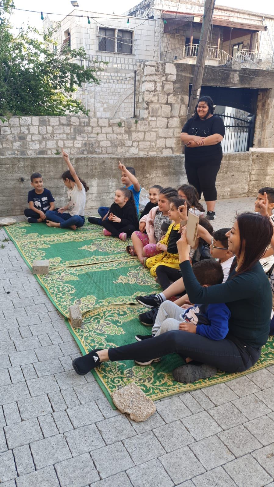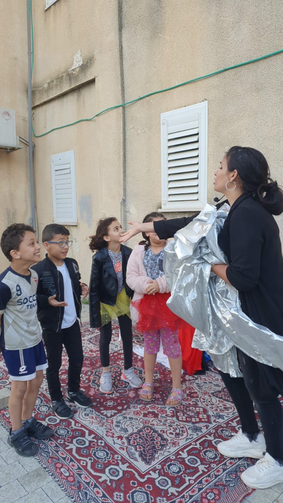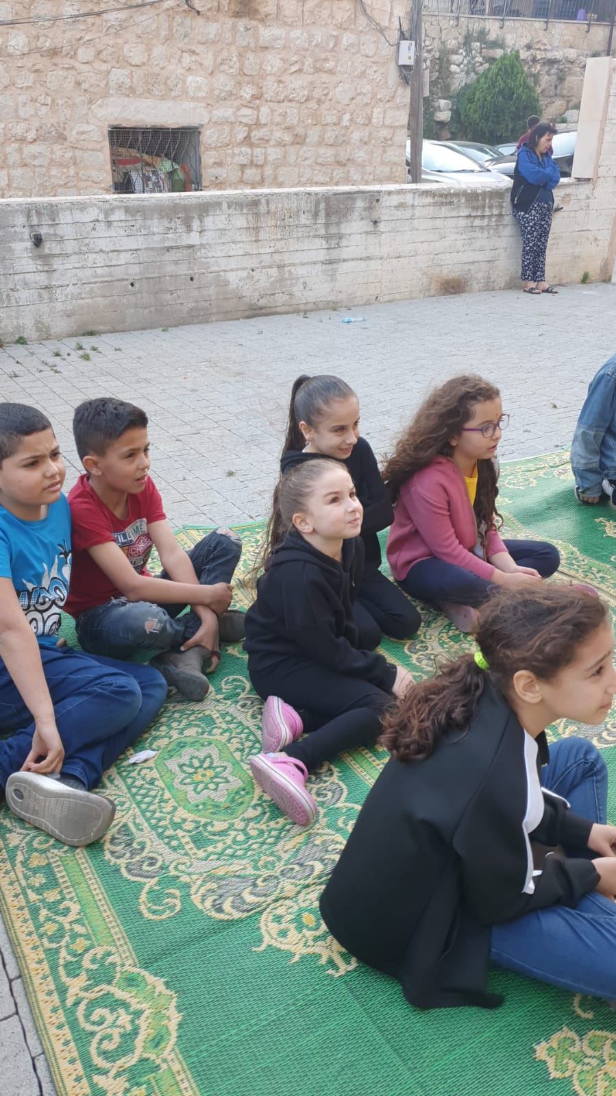 حيث التقت الفنانة لينا مع أطفال الحي وامهاتهم وبرعت في رسم بسمة حقيقية ملونة بأطياف الفرح والرضا على وجهوهم ، ولا سيما انها استطاعت ان تجعلهم يندمجون لأبعد الحدود مع القصة والدمى