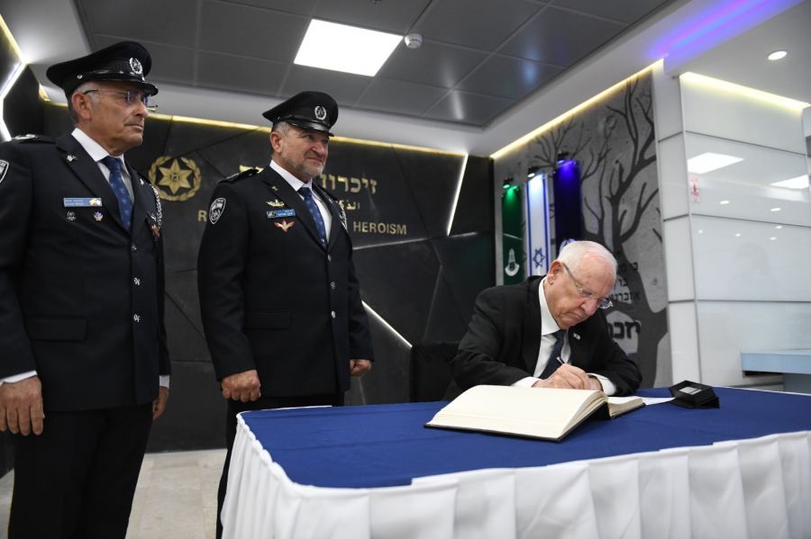 "افراد الشرطة والقادة، حراس إسرائيل، جئت لأحييكم" ، هكذا بدأ الرئيس خطابه في إشارة إلى لقائه بأفراد الشرطة طوال فترة توليه منصبه وأنشطة الشرطة الاعتيادية والطارئة: "لقد وقفت في الوسط آنذاك، وفرقتم بشجاعة بين المواطنين والإرهابيين. كنتم سترتنا الواقية نحن مواطني إسرائيل، في مواجهة الإرهاب الذي اندلع في الشوارع في تلك الأيام. وقفت معكم في مواقف صعبة ومؤلمة عندما ودعتم محاربين ومحاربات الذين دفعوا بحياتهم خلال دفاعهم عن الجبهة الداخلية".