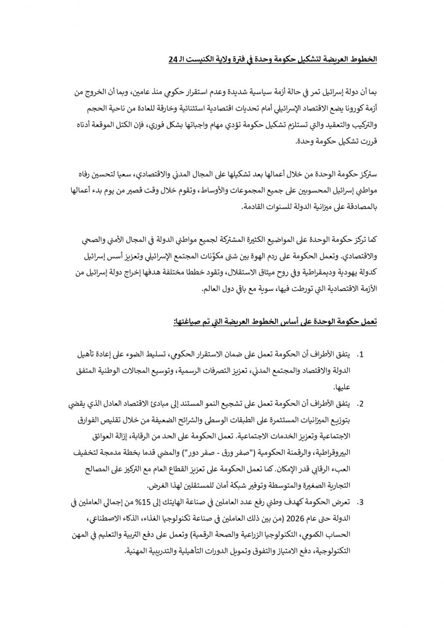 الخطوط العريضة لتشكيل حكومة وحدة في فترة ولاية الكنيست الـ 24:كنوز نت - الكنيستالخطوط العريضة لتشكيل حكومة وحدة في فترة ولاية الكنيست الـ 24: 13/06/2021 09:25 pm 3,607
