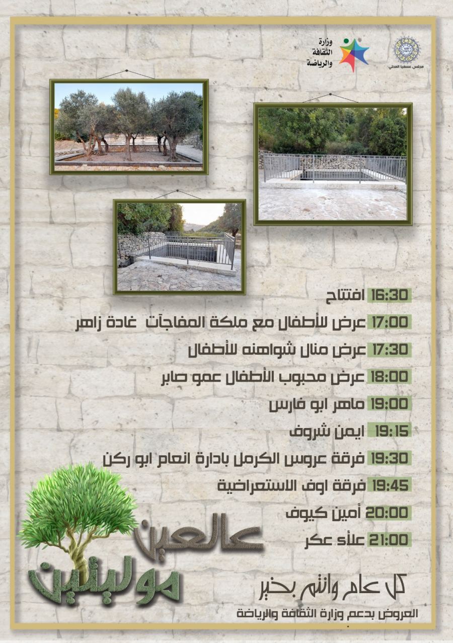 السيد بهيج منصور رئيس المجلس المحلي عسفيا: "بعد طول انتظار سنفتتح عين البلد بالمهرجان الكبير. ادعوا كل أهالي البلد لحضور الحفل المميز".