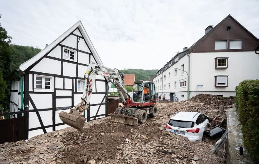 ووقعت أسوأ الفيضانات في ولايتي راينلاند بفالتس وشمال الراين-وستفاليا، حيث جرفت المياه مبانٍ وسيارات في طريقها.