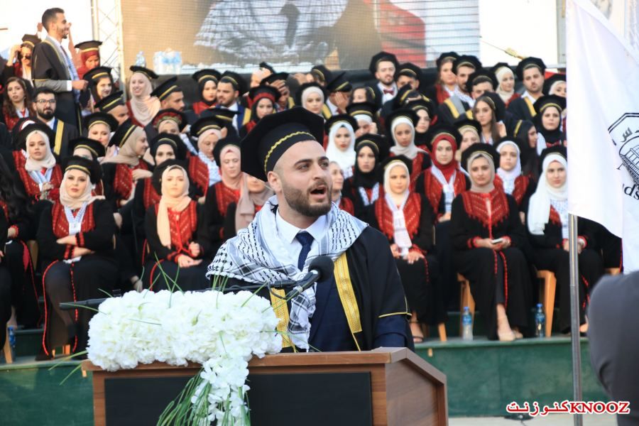وعبر زيد باسم الطلبة الخريجين عن حبهم لجامعة القدس وشكرهم لها ممثلة برئاستها وإدارتها وهيئتها التدريسية وجنود الخدمات وأنصار الجامعة وأصدقاؤُها.