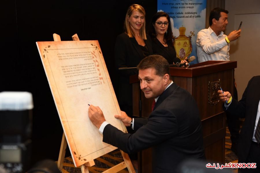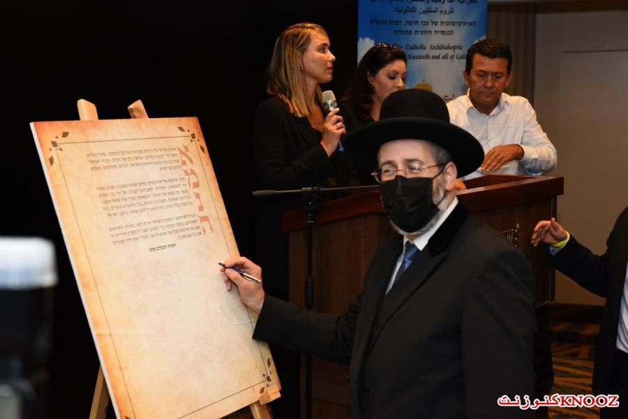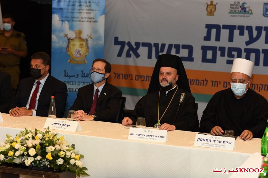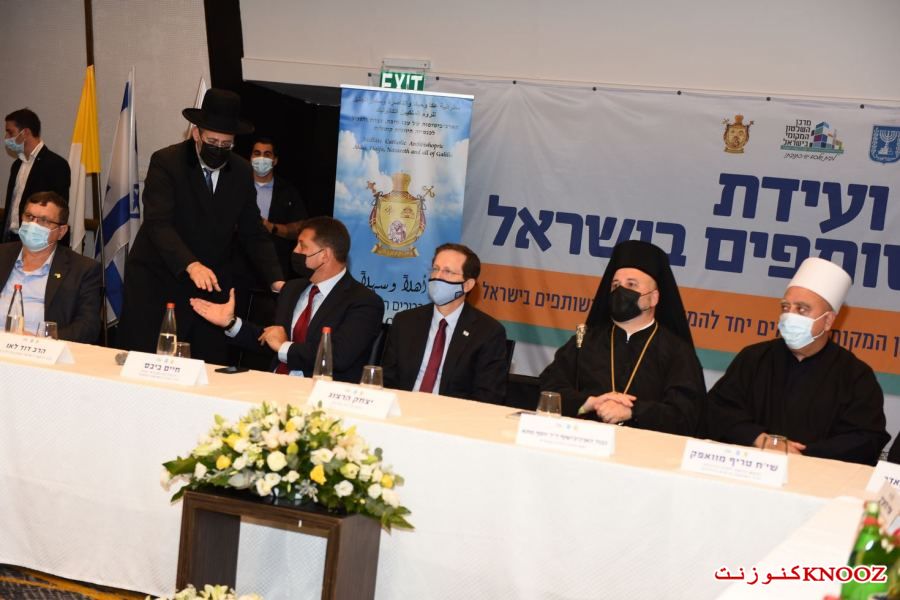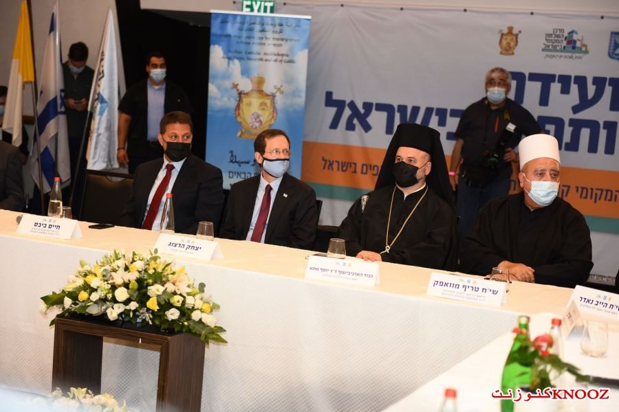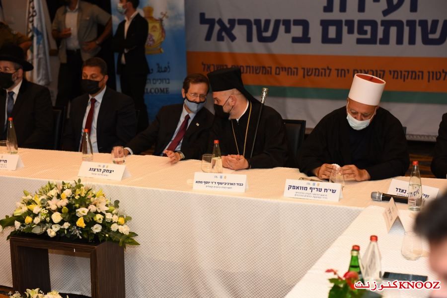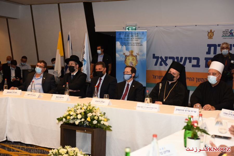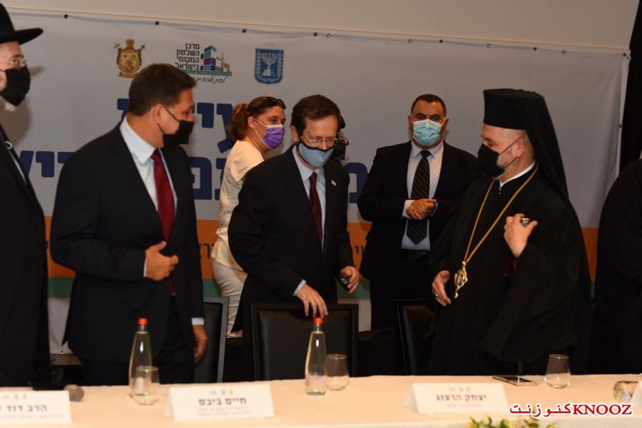 كنوز نت - لأول مرة منذ المواجهات التي وقعت في عدد من البلدات ومنها المدن المختلطة،عُقد صباح اليوم الإثنين (21.08.2) في مدينة حيفا المؤتمر الأول من نوعه للسلام والتعايش في إسرائيل بمشاركة عدد من رجال الدين من مختلف الطوائف على رأسهم المطران د.يوسف متى رئيس مطرانية عكا وحيفا والناصرة وسائر الجليل للروم الملكيين الكاثوليك، الحاخام الأكبر لإسرائيل الحاخام دافيد لاو،رئيس نقابة الأئمة والمؤذنين الشيخ نادر الهيب،الرئيس الروحي للطائفة الدرزية في إسرائيل الشيخ موفق طريف،وبحضور رئيس الدولة يتسحاق هرتسوغ،حاييم بيباس رئيس مركز السلطات المحلية ورئيس بلدية موديعين مكابيم رعوت،مضر يونس رئيس مجلس عارة عرعرة ورئيس اللجنة القطرية لرؤساء السلطات المحلية العربية، رئيس مجلس كفركما وممثل الطائفة الشركسية نابسو زكريا،أمير مزاريب رئيس مجلس الزرازير ورئيس منتدى السلطات المحلية البدوية في الشمال،عينات كاليش روتم رئيسة بلدية حيفا،أركادي بوميرانتس رئيس بلدية معالوت-ترشيحا،إيلي بردا رئيس بلدية مجدال هعيمق.