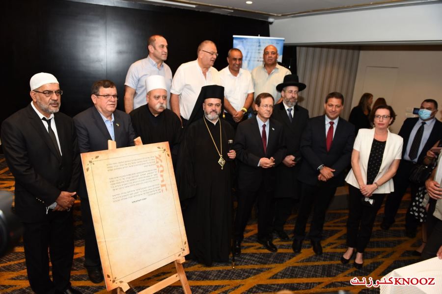 بحضور رئيس الدولة ورئيس مركز السلطات المحلية: رجال دين من مختلف الطوائف في البلاد يوقعون على وثيقة تدعو للحياة المشتركة ونبذ العنف في المجتمع الإسرائيلي