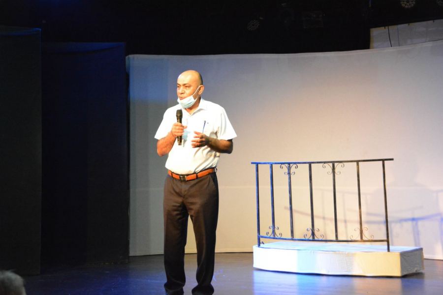 الفنان سليم ضو المدير الفني لمسرح الكرمة كان في استقبال ورحب بدوره بالجمهور القرعاوي مشيرا الى العلاقة الفنية الوطيدة التي تربطه مع كفر قرع من خلال سلسلة العروض التي قدمها على خشبة مسرح الحوارنة.