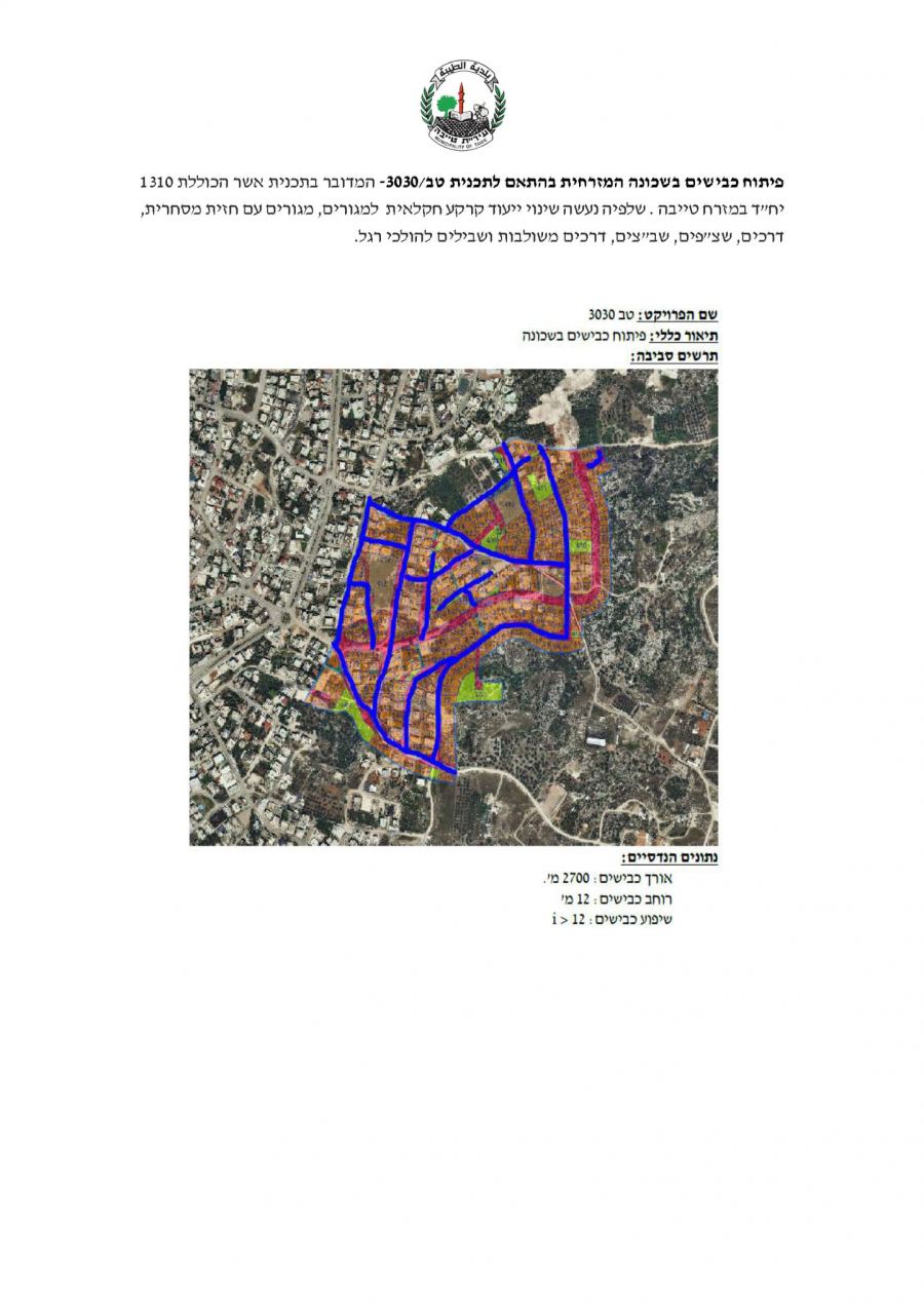 • شق وفتح شوارع في المنطقة الشرقية في الخارطة المُفصّلة (3030) بميزانية تقدر نحو 49 مليون شيقل.