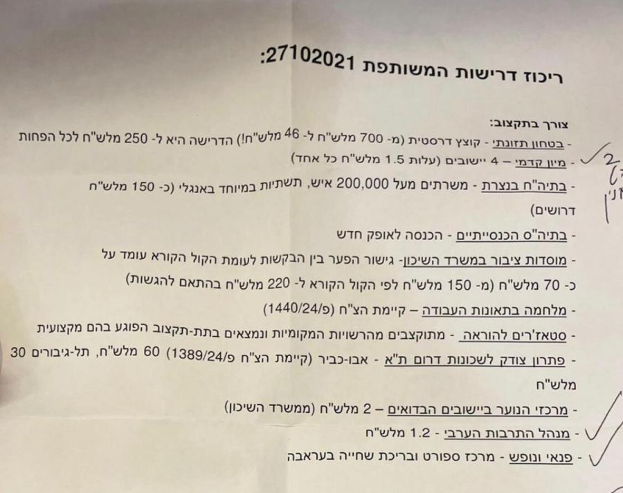 ● المشتركة تقدّم تحفظات بحجة دعم المعلمين العرب، وبالمقابل تصوّت ضد الميزانية التي حققت الموحدة من خلالها ميزانيات إضافية بمبلغ 9.4 مليار شيكل لتطوير جهاز التربية والتعليم العربي، وبناء 4000 غرفة دراسية جديدة وإضافة 7000 شيكل لكل طالب عربي سنويًا، وتوفير آلاف الوظائف للمعلمين العرب. أليس هذا استخفافًا بعقول الناس؟.