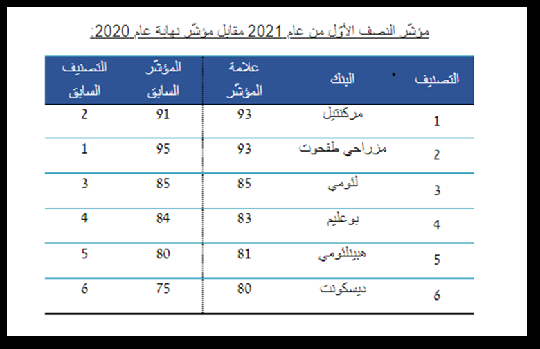 مؤشّر وديّة البنوك للمصالح الاقتصاديّة الصغيرة والمتوسطة للنصف الأوّل من العام 2021: