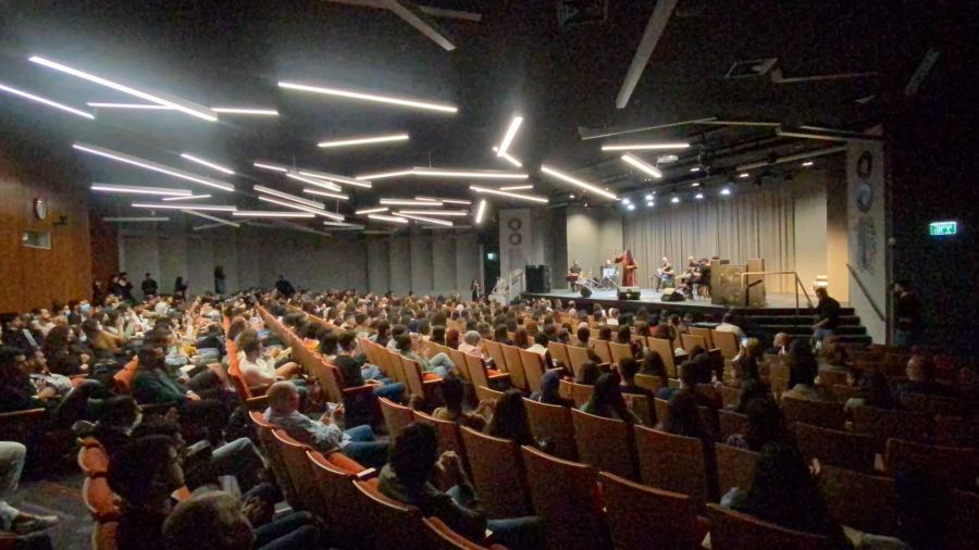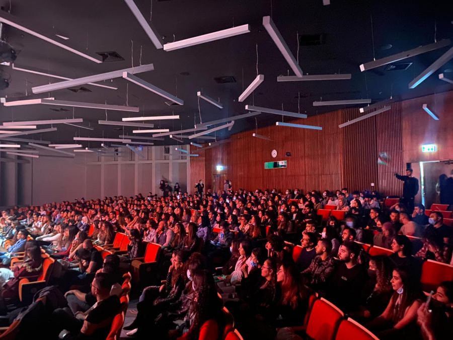 وامتلأت قاعة بار شيرا، إحدى أكبر قاعات الجامعة، من عند آخرها. وطار الجمهور عند مقاعده، خصوصًا عند الأغاني الوطنية، ورقصوا الدبكة ورفعوا الأعلام الفلسطينيّة.