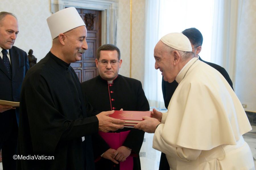 قداسة البابا يستقبل فضيلة الشيخ قاسم بدر في الفاتيكان.