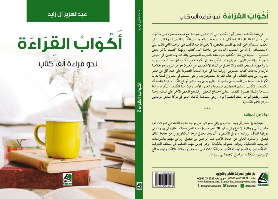 كنوز نت - فريق شبكة أصدقاء الثقافة | حوار : روان إسماعيل : قبل انسدال ستائر عام ٢٠٢١، توّج مجلس إدارة ملتقى الشام الثقافي العالمي الروائي السعودي عبدالعزيز آل زايد، لقب "شخصية مهمة" لعام ٢٠٢١م، باعتباره شخصيّة ذات تأثير وفعل إيجابي واجتماعي وثقافي وإنساني، يضم ملتقى الشام الثقافي العالمي أكثر من ٣٨ ألف عضو من مختلف الطبقات الثقافية والفكرية، ويعنى بنشر المقالات والدراسات النقدية في الفضاء الافتراضي، وفي تعقب لإصدارات آل زايد الأخيرة، برز لنا من خلال محركات البحث ومنصات بيع الكتب الإلكترونية ومعارض الكتاب الدولي كتابه البارز (أكواب القراءة)، الصادر عن دار كنوز المعرفة العلمية بالأردن - العاصمة عمان..