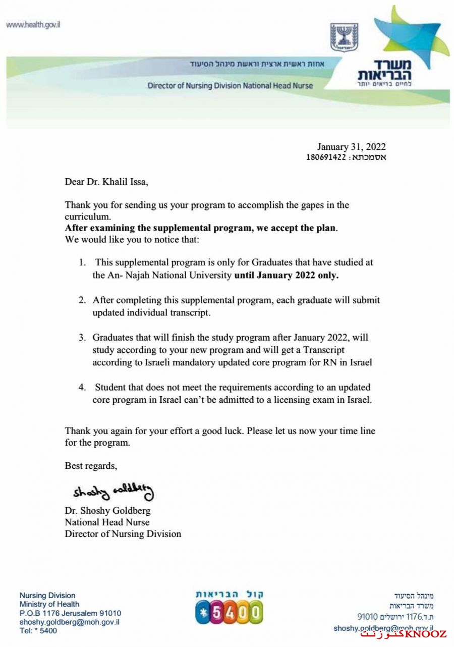 كنوز نت - أصدر المكتب البرلماني للنائب أسامة السعدي (العربية للتغيير-القائمة المشتركة) بيانًا جاء فيه: "بعد متابعة حثيثة وسلسلة اجتماعات وجلسات مهنية قمنا بها في القائمة المشتركة أمام وزارة الصحة وكذلك أمام إدارة الجامعة وعمداء الكليات، في سبيل إيجاد حل لخريجي التمريض، نجحنا بالتوصل إلى حل لخريجي جامعة النجاح في نابلس.
