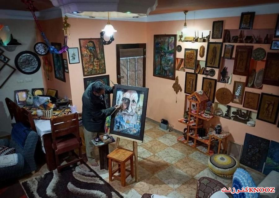 كنوز نت - من الصحفي عبدالله عم : منزل الفنان الفلسطيني الدكتور عبد الوهاب أبو حرب في غزة، يتحول إلى لوحة فنية ومعرض دائم
