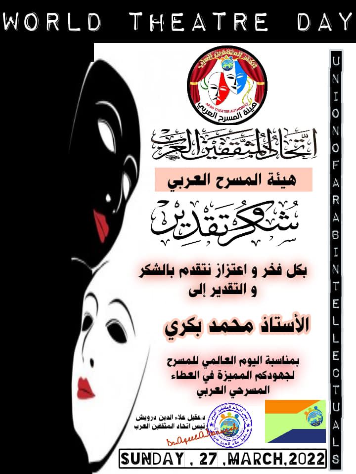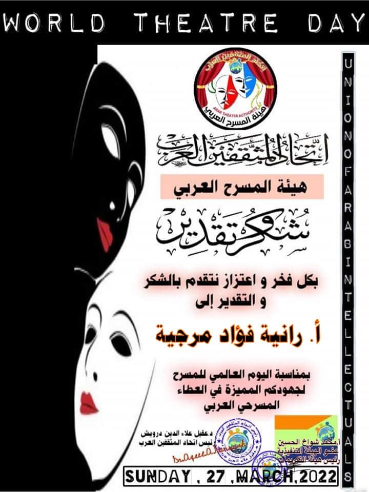 اتحاد المثقفين العرب يكرم نخبة من المسرحيين في يومهم العالمي