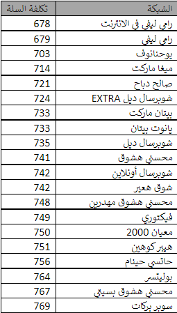 أسعار السلة في مختلف الشبكات: