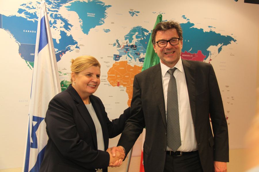 وزيرة الاقتصاد والصناعة تلتقي بوزير التطوير الاقتصادي الإيطالي ويناقشان تعزيز العلاقات التجاريّة ودمج الشركات الاسرائيليّة في الخطط الإصلاحيّة الاقتصاديّة في إيطاليا