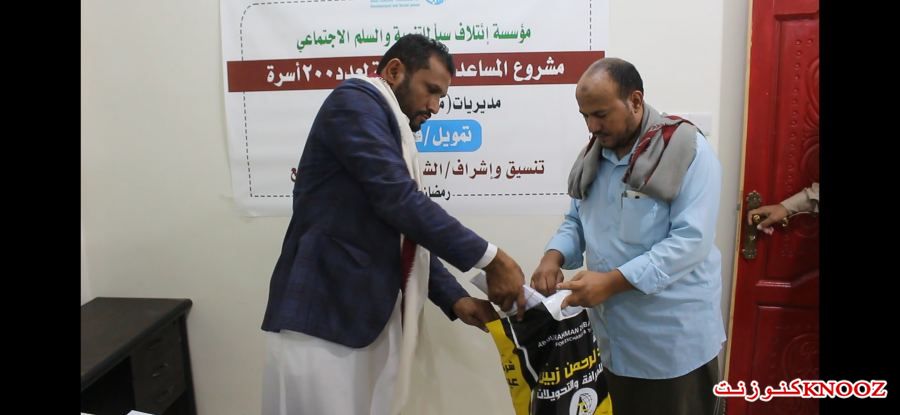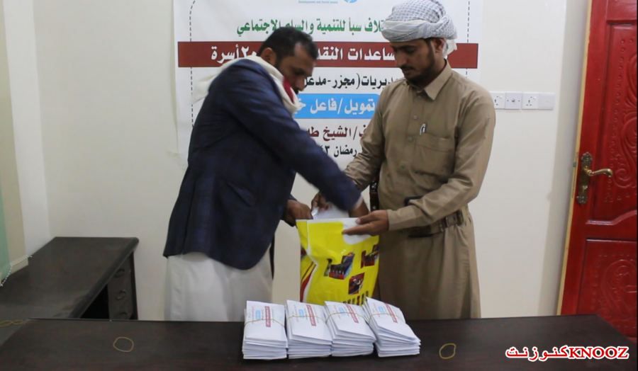 كنوز نت - اليمن : نفذت مؤسسة ائتلاف سبا للتنمية والسلم الاجتماعي SFDP - محافظة مأرب مشروع توزيع المعونات النقدية الرمضانية المقدمة من فاعل خير بتنسيق وإشراف الشيخ طه علوى الباشه زبع للعام 1443 هجرية و لعدد 200 اسرة بواقع 1400 نسمه وذلك للأسر المحتاجة و النازحة والفقيرة في محافظة مارب مديريات مجزر ومدغل ورغوان.