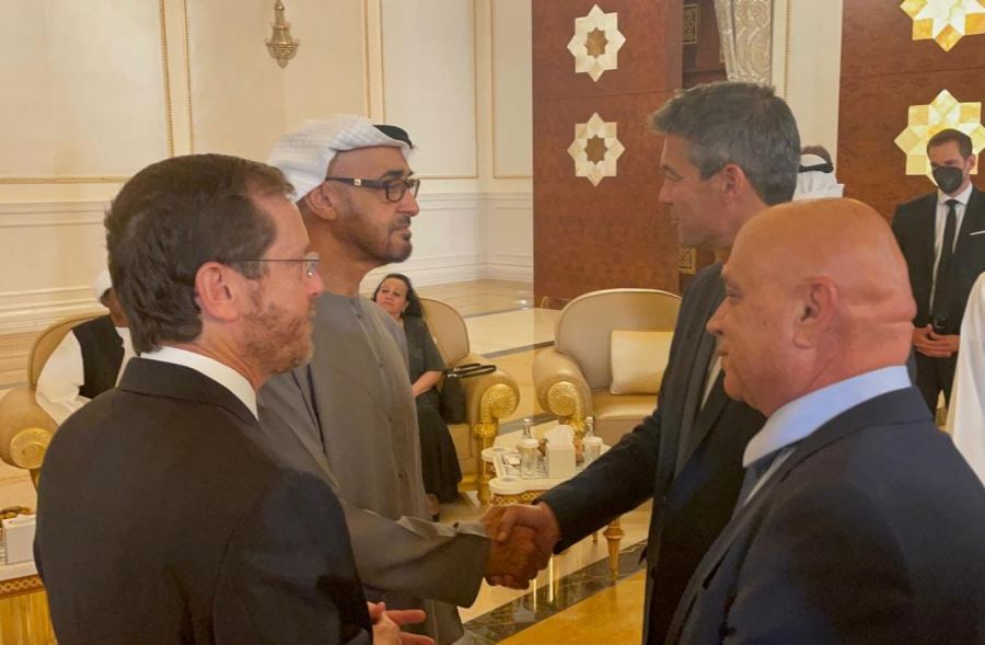 كنوز نت - سوسن سرور : أقلعت قبل قليل طائرة رسمية تقل كلاً من رئيس الدولة يتسحاك هرتسوغ ووزير التعاون الإقليمي عيساوي فريج ووزير الاتصالات يوعز هندل إلى أبو ظبي لتقديم واجب العزاء لرئيس الإمارات الجديد سمو الشيخ محمد بن زايد، وعائلته والشعب الإماراتي، بوفاة رئيس الإمارات وحاكم أبو ظبي الشيخ خليفة بن زايد رحمه الله.