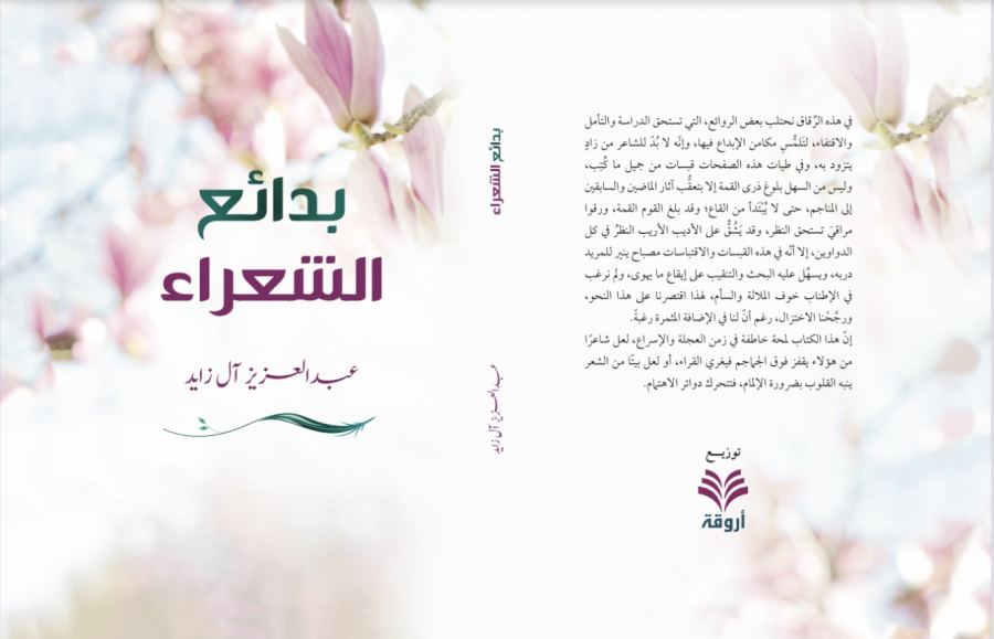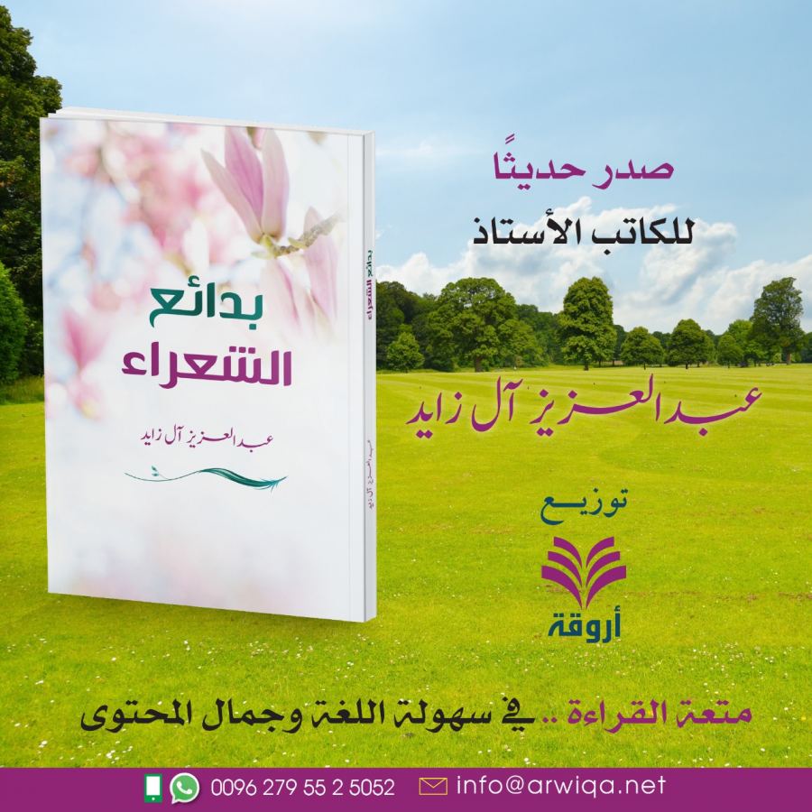كنوز نت - دار أروقة | يفاجئ الكاتب والأديب السعودي عبدالعزيز آل زايد الشعراء ومحبي الأدب بمطبوعة أدبية أنيقة فاخرة، أطلق عليها اسم (( بدائع الشعراء ))، هذا الكتاب من إصدارات دار أروقة للدراسات والنشر، وهي دار نشر أردنية، تتخذ من عَمّان مقرًا لها. في استهلالة الكتاب يصرح الأديب آل زايد بتهيامه للشعر وهيامه لقوافل القصيد بقوله: "عشقت الشعر وطربت لإلحانه منذ البواكير، وكنت أتمايل على إيقاعاته منذ الصغر، حتى حفظت بعضًا مما لامس الفؤاد، وسحر العيون والمقل، وعكفت على التلاحين دهرًا وترنمت بأعذب الأشعار".
