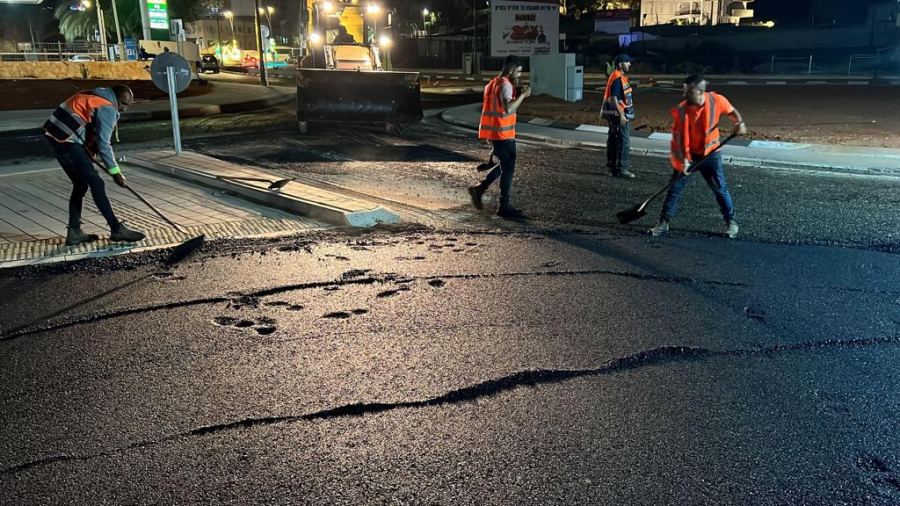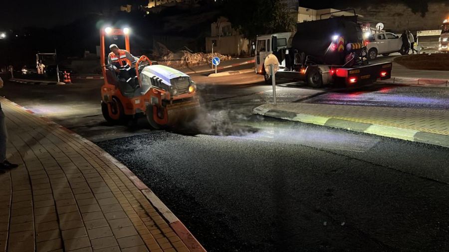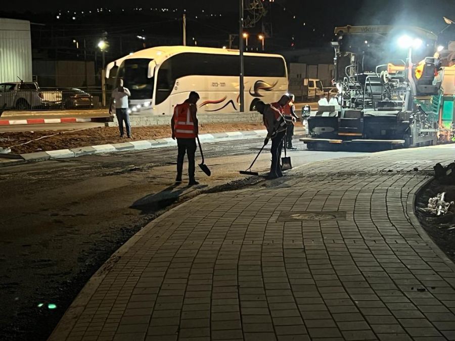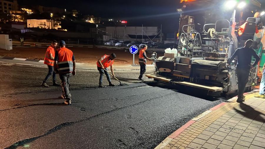 تعبيد دوار مدخل كفرقرع الرئيسي وشارع الامل