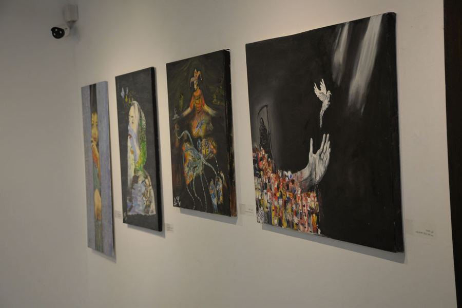 كانت ايضاً مداخلة للدكتور منير توما الذي قام بتحليل لوحات المعرض بابعادها وتداعياتها ومعانيها الرمزية التي تحمل في طياتها الكثير من المواضيع المتناقضة ما بين الأمل والالم بصور تعبيرية فنية جميلة .