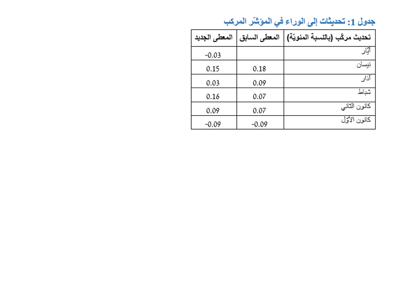 - جدول 1: تحديثات إلى الوراء في المؤشّر المركب