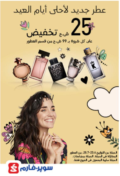 كنوز نت - حنان حبيب الله : أطلقت شبكة سوبر-فارم حملتها الجديدة بمناسبة عيد الاضحى المبارك، "عطر جديد لأحلى أيام العيد"، به تدلل الزبائن بتخفيضات خاصة على العطور في فروع الشبكة فقط.