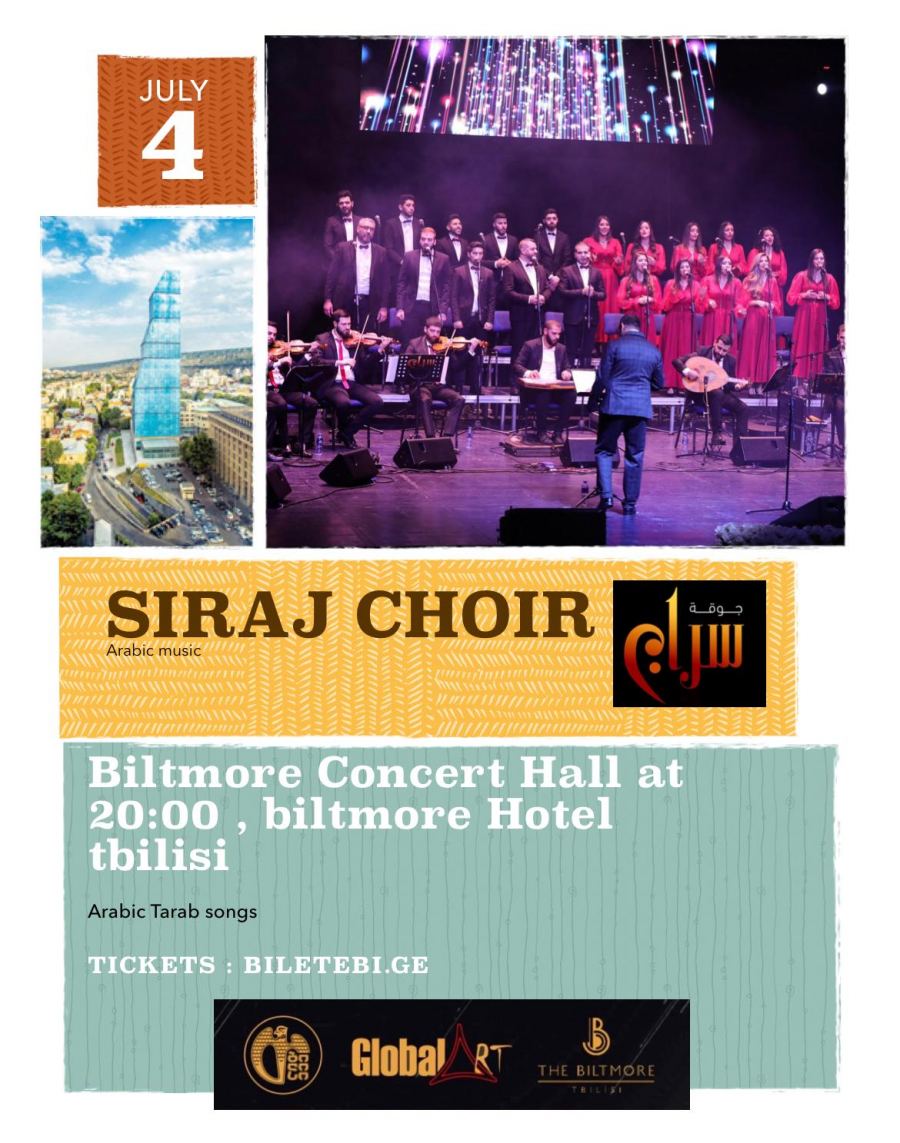بدعوة من بلدية تبليسي ستحيي جوقة سراج ليلة طربية مميزة تحضرها الجالية العربية والعديد من الوزارات الاجنبيه هناك بالإضافة الى الجورجيين ..