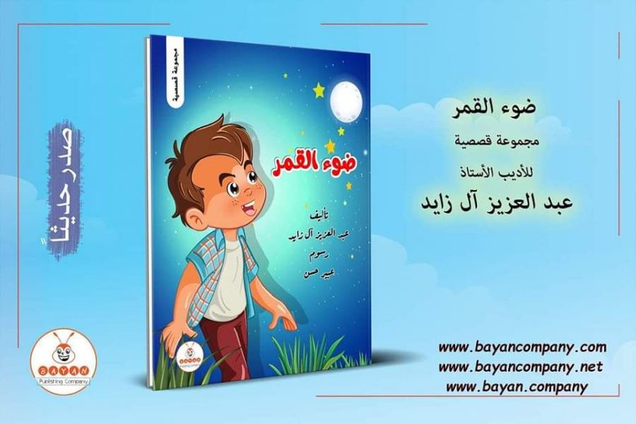 صدر حديثًا عن موسسة بيان للنشر والتوزيع في بريطانيا، للأديب السعودي القاص عبدالعزيز آل زايد، كتاب ( ضوء القمر )، وهو عبارة عن مجموعة قصصية هادفة موجهة للصّغار، من رسومات الفنانة المبدعة: عبير حسن، الكتاب عبارة عن يوميات الفتي النجيب ( أمير )، بطل الحكايات وزعيم المغامرات، من خياله يرسم الأديب والروائي آل زايد العديد من القصص المتخيلة؛ ليعالج الكثير من الشؤون والمواضيع التي يخاطب بها الأبناء الصّغار، حيث يرى آل زايد أنّ الأطفال هم قيادات الأمم، ورجالات المستقبل، لهذا كرس وقته وجهده، من أجل تثقيف الطفل، الذي يرى أنّ له حق على الجميع، تحفة قصصية يترقبها الصّغار، من تأليف معلم تربوي له خبرة طويلة في التعامل مع الصّغار واليافعين.
