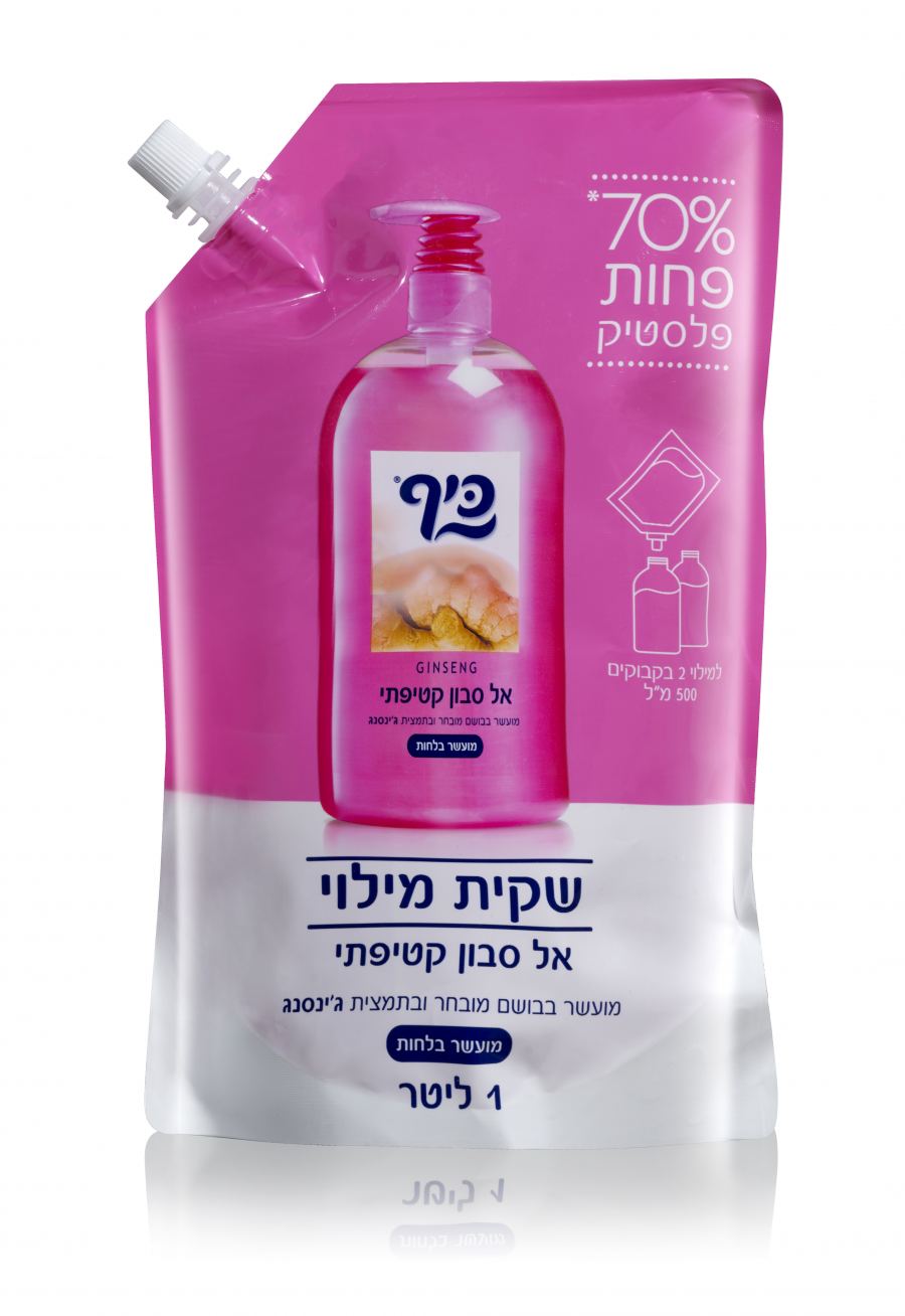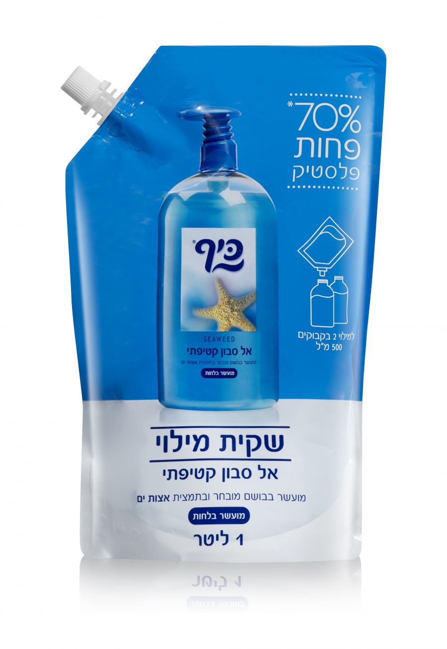 كيس تعبئة صديق للبيئة من الصابون السائل بسعة 1 لتر، مع سدّادة لتعبئة سريعة ومريحة، يقلّل من كمية البلاستيك بنسبة 70% ويساعد في الحفاظ على جودة البيئة. *