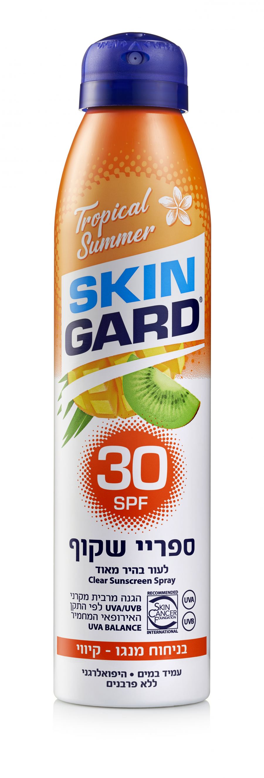 Tropical Summer هي حل مثالي للوقاية من أشعة الشمس من بيت Skin Gard: فهي شفّافة، ذات عامل حمايةSPF30 ، تأتي بعدّة روائح منعشة وتشجّع على اتّباع عادات صحيحة للوقاية من أشعة الشمس.
