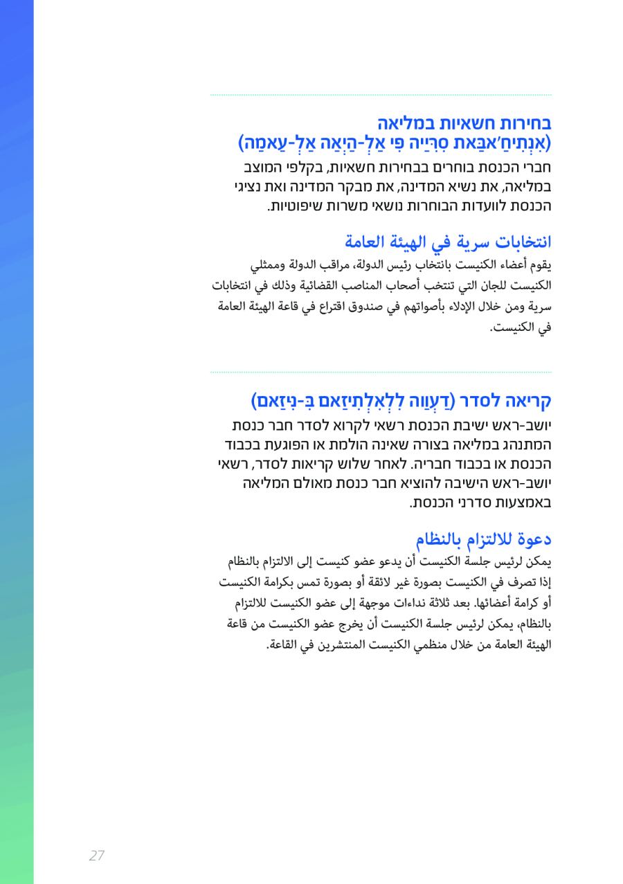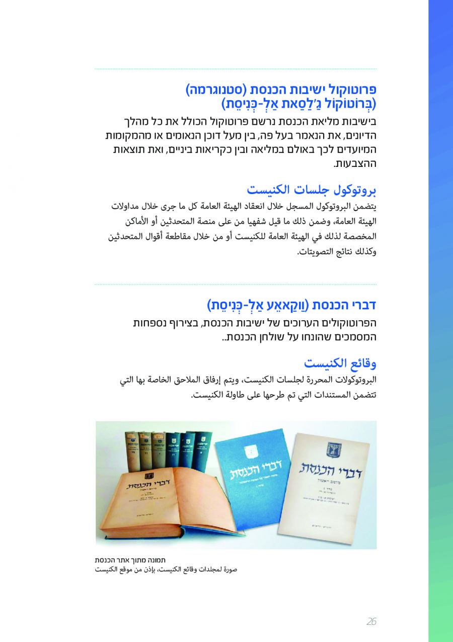 كنوز نت - يضع طاقم موقع الكنيست باللغة العربية بين أيديكم كتيبا جديدا من إصدار البرلمان الإسرائيلي، #الكنيست، والذي قد ساهم طاقم الموقع باللغة العربية في إنجاز عمله.