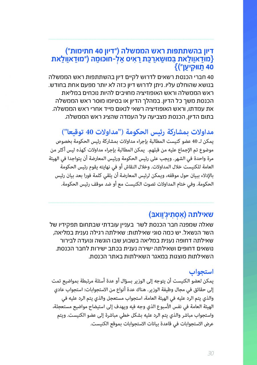 اصطلاحات برلمانية أساسية في الكنيست الإسرائيلية