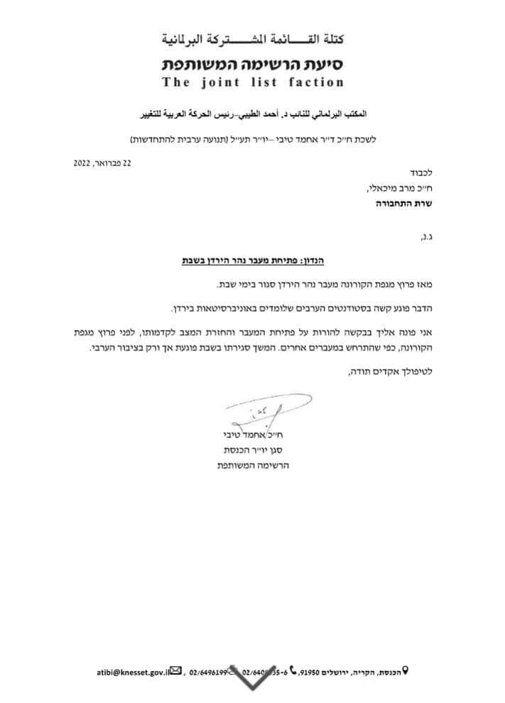 جاء في بيان صادر عن النائب احمد الطيبي : بعد اغلاق طويل لمعبر الشيخ حسين ايام الجمعة والسبت وبعد اجتماعات مع وزيرة المواصلات ميراڤ ميخائيلي وطاقمها وطرح القضية في الكنيست اثر تضرر مجتمعنا وخاصة قطاع الطلاب الذين يدرسون في المملكة الاردنية الهاشمية ابلغنا اليوم من قبل وزيرة المواصلات ان معبر الشيخ حسين سيتم فتحه في نهايات الاسبوع، جمعة سبت، بالاضافة لتوسيع ساعات العمل كالتالي: