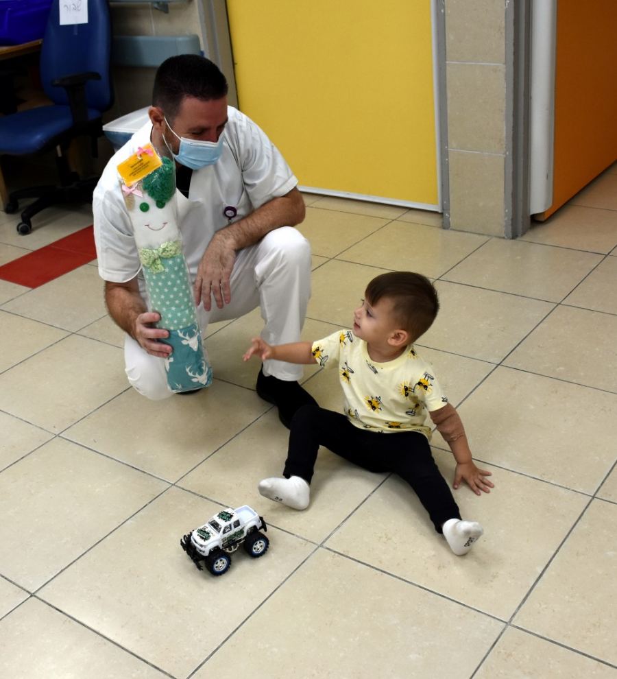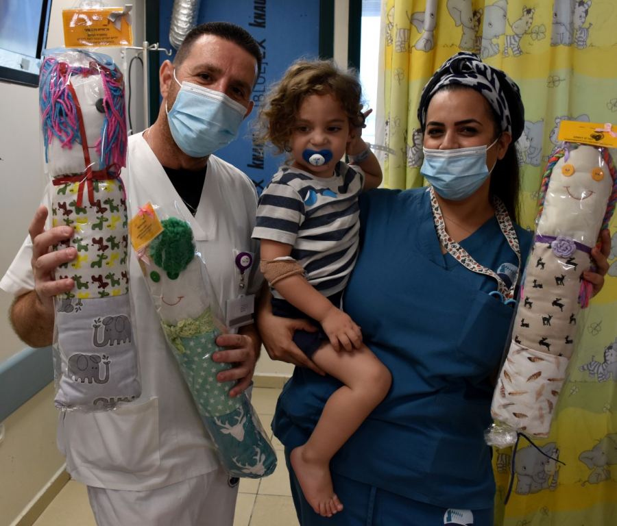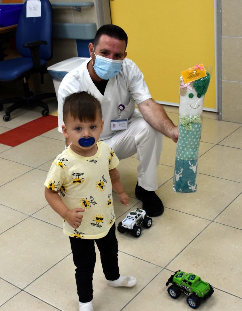 التبرع بعشرات الدُمى التي قام بخياطتها وتصنيعها أولاد صف سادس في بات يام، للأولاد الخاضعين للعلاج في المركز الطبيّ باده - بوريا
