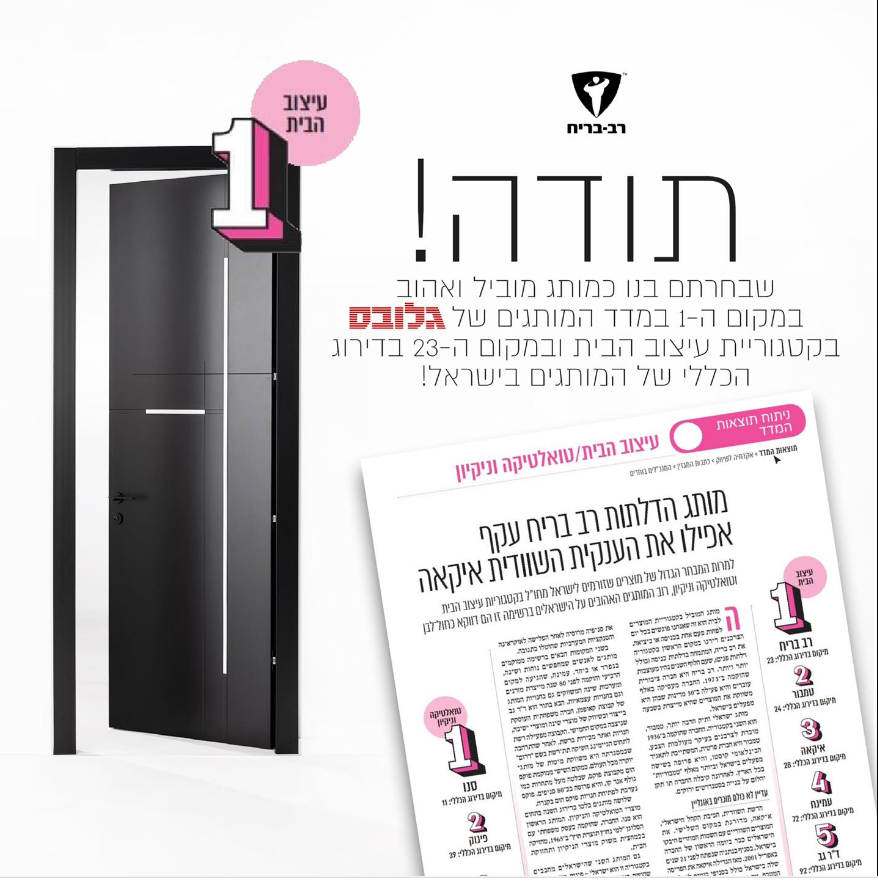 إننا ممتنون ومتحمسون وسعداء بأن يتم اختيارنا كشركة التصميم الرائدة في المرتبة الأولى بمؤشر الماركات المنبثق عن جلوبس גלובס - Globes-Globes ! ♥️