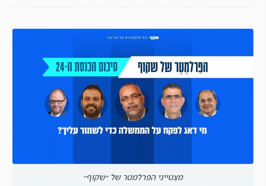 كنوز نت - نشر موقع شكوف تقييمًا جديدًا ومعطيات نهائية حول عمل ونشاط جميع نواب الكنيست خلال دورة الكنيست الأخيرة، هذا وبموجب التقييم الجديد يحتلّ النائب أسامة السعدي (العربية للتغيير - القائمة المشتركة) المرتبة الأولى من بين جميع نواب الكنيست ويليه النائب د. أحمد طيبي (العربية للتغيير - القائمة المشتركة) في المرتبة الرابعة والنائب عوفر كسيف (الجبهة - القائمة المشتركة) في المرتبة الخامسة، وبذلك يحتل نواب القائمة المشتركة ثلاث مراتب من بين المراتب الخمس الأولى.