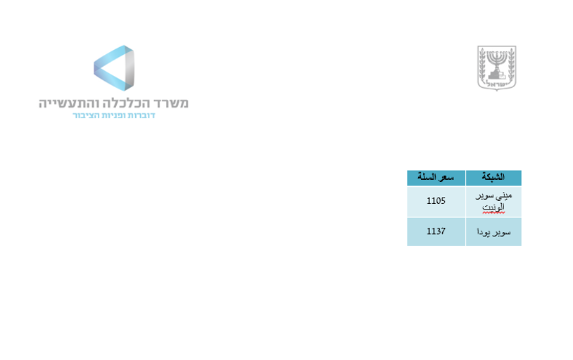 *سجّلت سلة المنتجات المختارة انخفاضًا ب-15 شيكل مقارنةً بسعر السلة في الشهر السابق