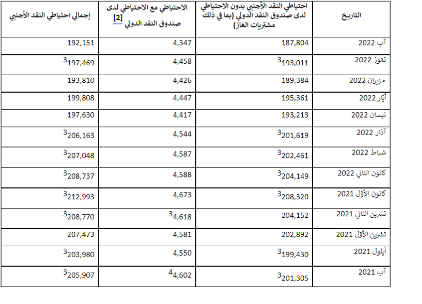 [2] يتضمن هذا العمود حقوق السحب الخاصة (SDRs) ورصيد قرض NAB ورصيد Reserve Tranche في صندوق النقد الدولي.