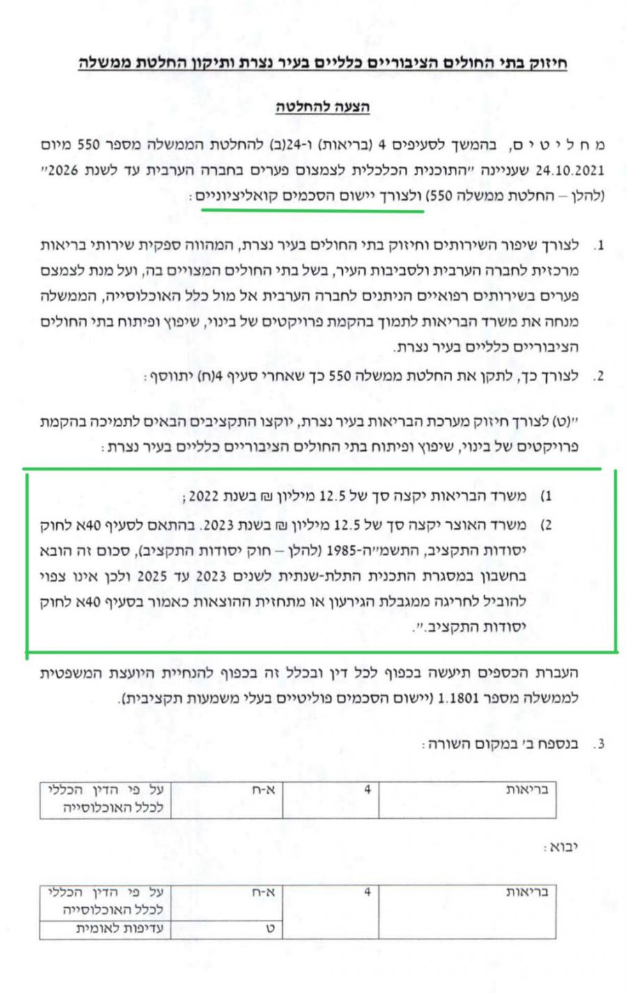 من ميزانيات الموحدة: الحكومة تصادق على تحويل 25 مليون شيكل لدعم مستشفيات الناصرة