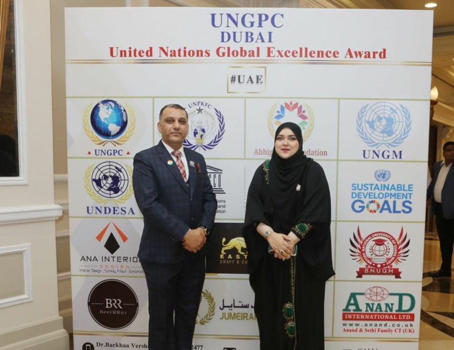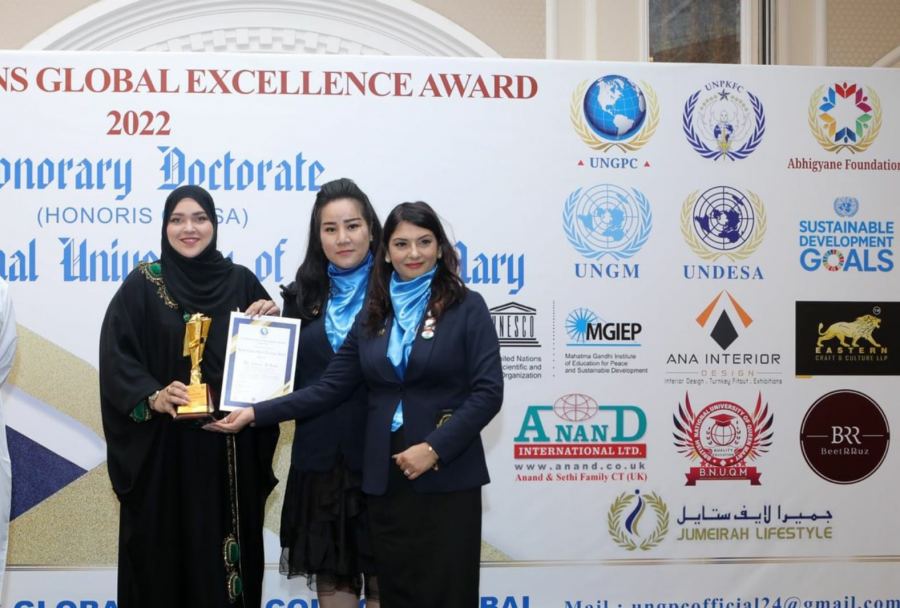 كنوز نت - من الصحفي عبدالله عمر - أقام مجلس السلام العالمي التابع للأمم المتحدة في دبي حفل تكريم عدد من الشخصيات الحقوقية المتميزة والمتعددة الجنسيات حيث حصل بعض الأفراد على الدكتوراه الفخرية من الجامعة البريطانية الدولية ل M آري في مختلف المجالات، وتكريم بعض الحاضرين والأعضاء المشاركين في العديد من المنظمات الدولية، و تكريم عدد من الأفراد القانونيين والمرموقين بجائزة التميز العالمية للأمم المتحدة حيث تلقيت بكل حب دعوة خاصة من فخامة الدكتور بركة رئيس ومؤسس منظمة "UNGPC" حيث تم اختياري وتكريمي ب"جائزة التميز العالمي للأمم المتحدة" من المجلس لمختلف أعمالي التي ساهمت في تقديمها في مختلف المجالات للجمعيات وبحضور مجموعة من رجال وسيدات الأعمال ورؤساء ومؤسسي عدد من المنظمات المحلية والدولية حول العالم..