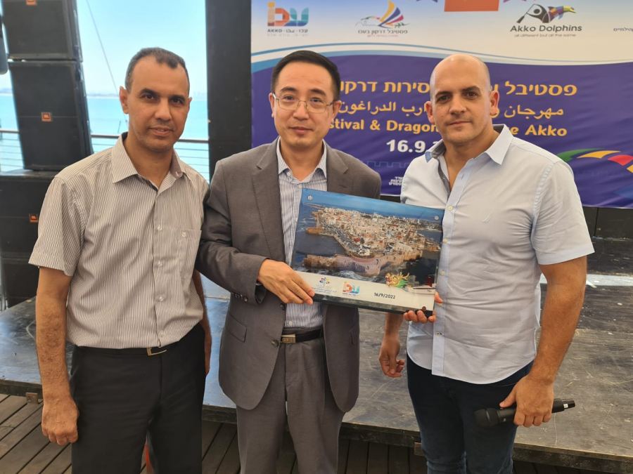 كما وتحدث مدير عام البلدية السيد يانيف اشور عن اهمية علاقة السفارة الصينية والمراكز الجماهيرية والبلدية وعن مبادرة السيد لؤي فارس لاقامة نادي رياضي بحري في عكا وعن جلبه لهذا السباق من تل ابيب الى عكا وتنظيمه بتألق وانه فخراً له ولعكا وعن برامج المراكز الجماهيرية اسوار عكا الغزيرة والمنوعة لتطوير سكان المدينة.