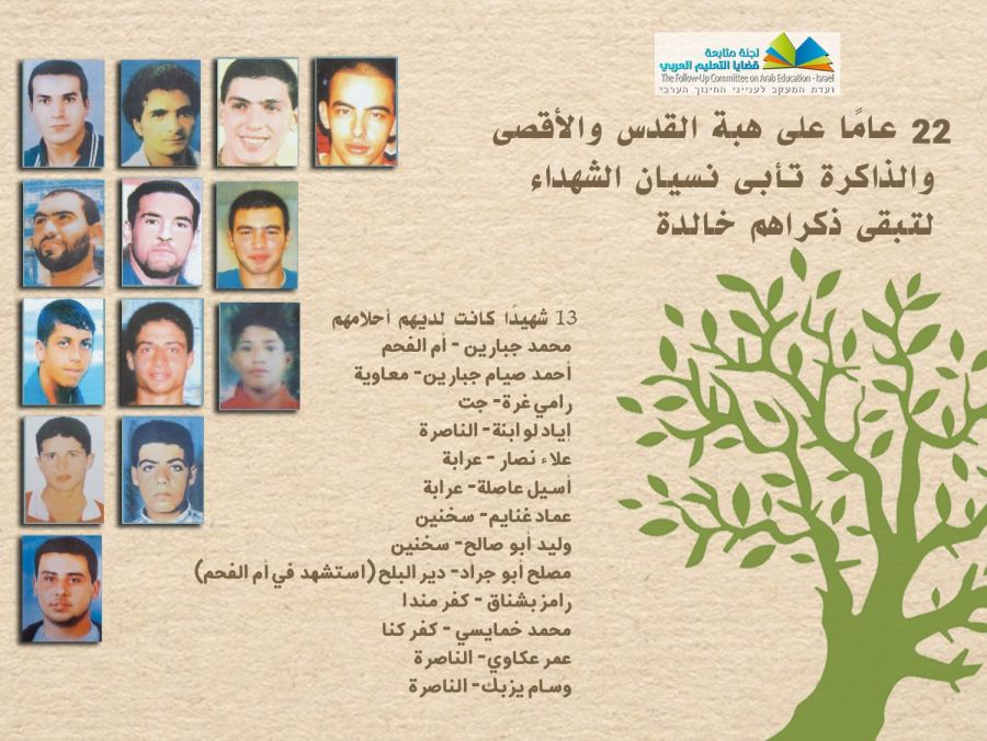 وكانت اللجنة قد أكدت في رسالة سابقة (حزيران، 2022) تناولت موضوع الخطط المدرسية السنوية إلى ضرورة تنظيم برامج تربوية عميقة ومتواصلة متعلقة بالتربية للهوية الوطنية والانتماء كما وأكدت على أهمية إحياء المناسبات الوطنية كافةً خلال العام الدراسي ومنها الذكرى الـ 22 لهبة القدس والأقصى التي تصادف في الفاتح من الشهر القادم (1 تشرين أول 2022).