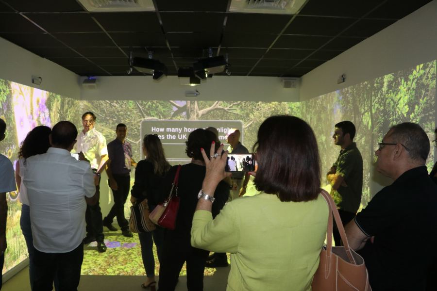 أختتم الحفل أخيرًا بقصّ شريط الافتتاح وسط أجواء مبهجة، إلى جانب عرض "تخيليّ" خاصّ داخل المختبر قدّمه الدكتور نايف عوّاد، مدير وحدة تكنولوجيا المعلومات والاتصالات ومدير مركز المحاكاة في الكليّة، حيث قدّم شرحًا عن الإمكانيات والتقنيات المتاحة في المختبر، وعرض نماذج عدّة بالصوت والصورة أمام الحضور بمشاركتهم وتفاعلهم بتجربة علمية وتكنولوجية مميّزة.