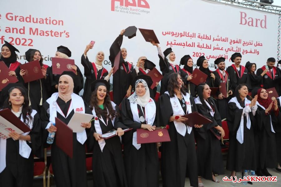 كنوز نت - ياسمين الخطيب - نظمت كلية القدس بارد في جامعة القدس حفل تخريج الفوج العاشر لطلبة البكالوريوس، والثاني عشر لطلبة الماجستير في أساليب التدريس للعام الأكاديمي 2022-2023 في حرم الجامعة الرئيس، بمشاركة رئيس الجامعة أ.د. عماد أبو كشك، ورئيس كلية بارد في نيويورك البروفيسور ليون بوتستين، وعميد كلية القدس بارد د. دانييل تيريس، ولفيف من الكادر الأكاديمي والإداري وذوي الطلبة.