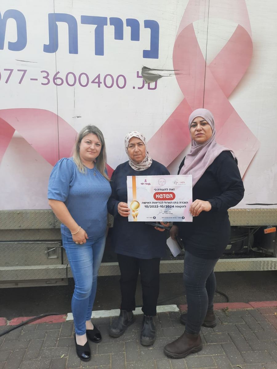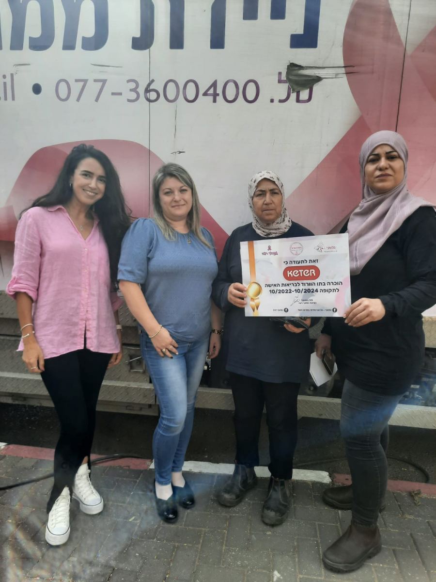كجزء من هذا النشاط الذي يشجّع على الفحص والكشف المبكر، قامت "كيتر" باستقدام دورية متنقّلة لتصوير "ميموغرافيا" و"أولتراساوند" لجميع موظّفات الشركة في البلاد، مجانًا، ولتشجيعهن على اجراء الفحص مجانًا وبدون تعيين دور في مؤسّسات الصحّة العامة. وقد صلت الدوريات المتنقلة إلى كرميئيل ويوكنعام وتم فحص عشرات النساء فيها.